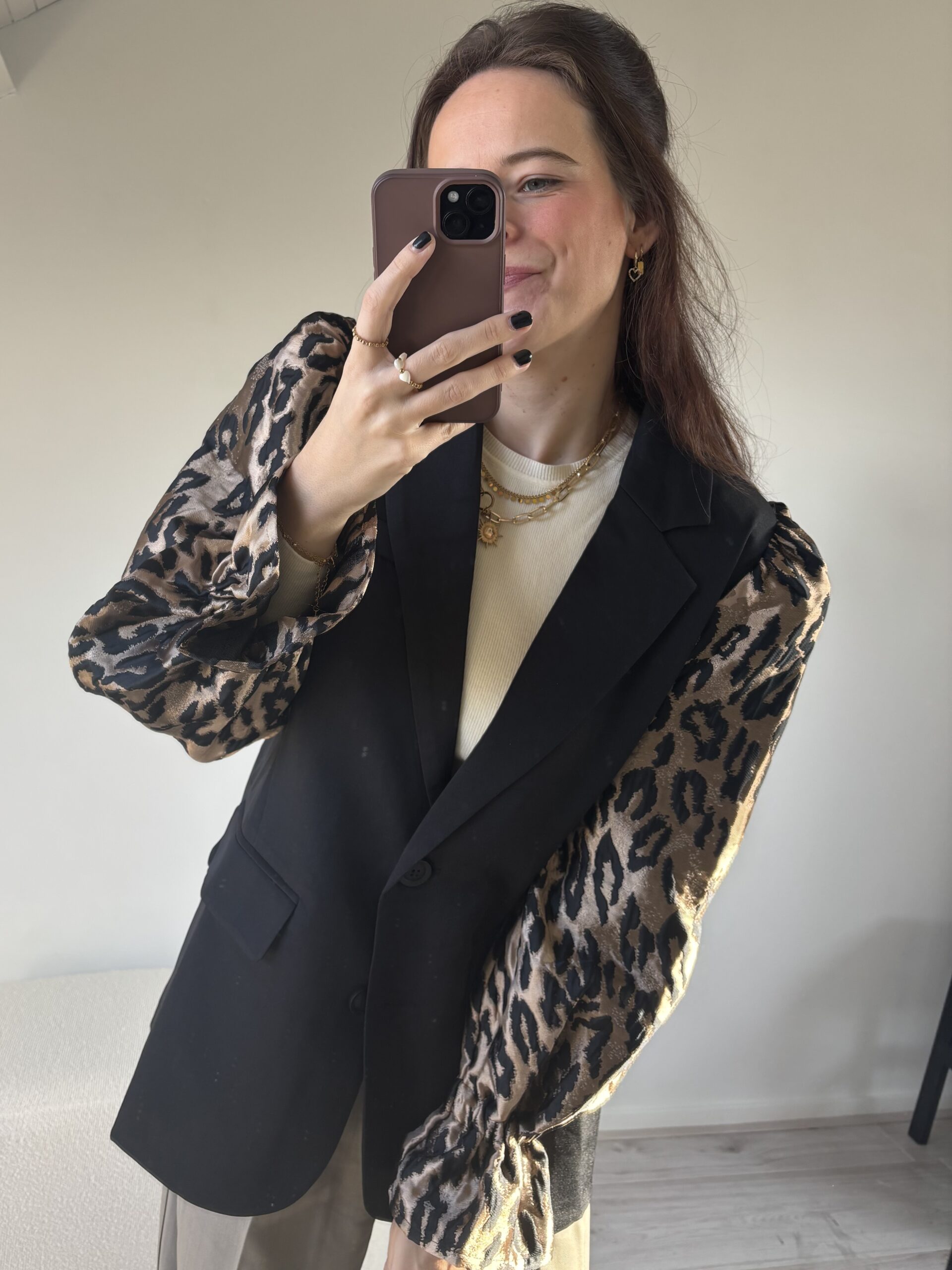 Deze trendy blazer is echt een must-have. De blazer heeft pofmouwen valt oversized.
