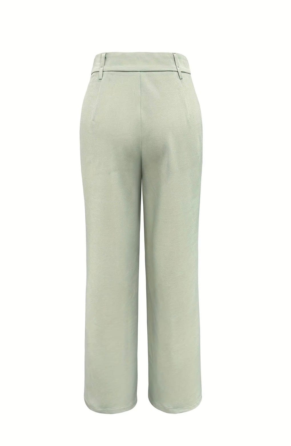 Deze nieuwe olijfgroene wide leg pantalon is een stijlvolle toevoeging aan je garderobe. De pantalon heeft een mooie wijde pasvorm en valt elegant tot op de schoenen, wat zorgt voor een lange en flatterende look. De olijfgroene kleur geeft een trendy en tijdloze uitstraling en is perfect te combineren met zowel lichte als donkere tinten.