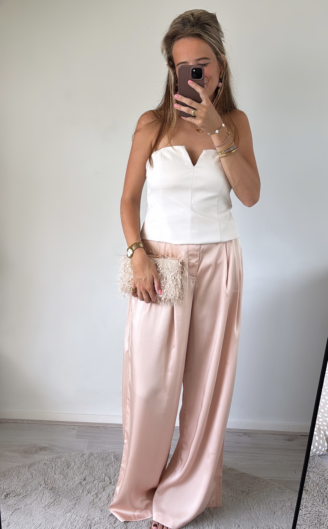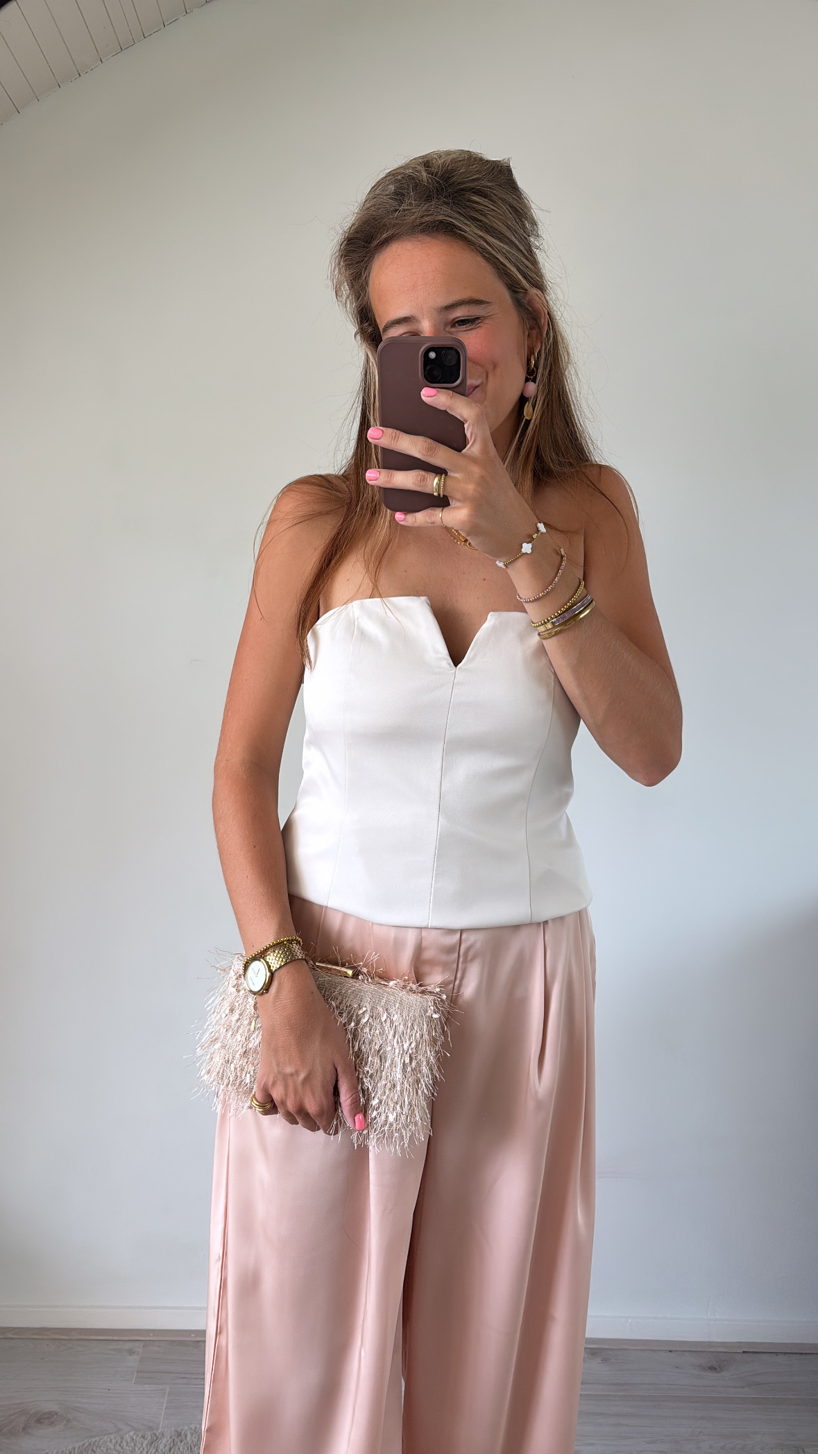 Strapless top creme. Dikke stof. Aan de zijkant heeft de top een rits.