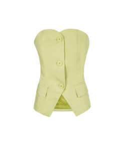 Strapless top groen. Dikke stof. Aan de voorkant heeft de top knopen en zakjes als detail.