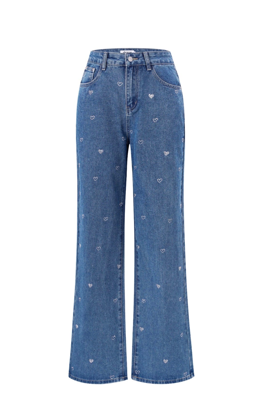 Wide leg jeans met hartjes aan de voorkant.